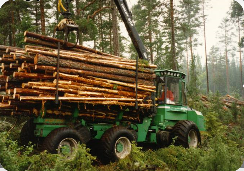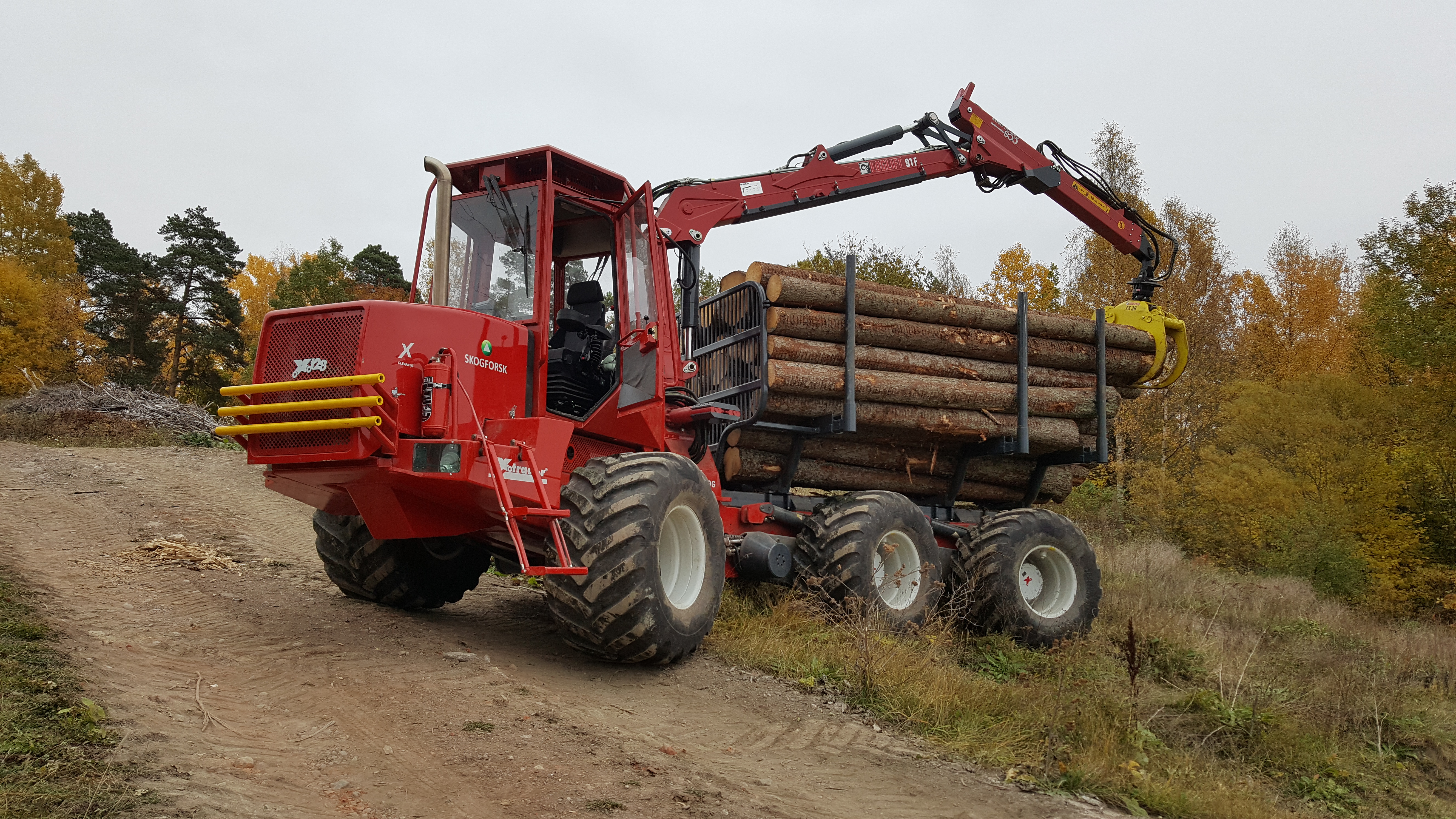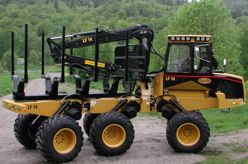 var och är fortfarande en imponerande skapelse som lanserades 1973. I en maskingrupp följde en processor eller kvistare/kapare och ett par skotare efter, oftast var det fem dieselmotorer i en maskingrupp. Pendelarmar med inbyggt kedjedrivning och kvicksilver-brytare kopplat till cylindrarna för alltid uppåt-nivelleringen.