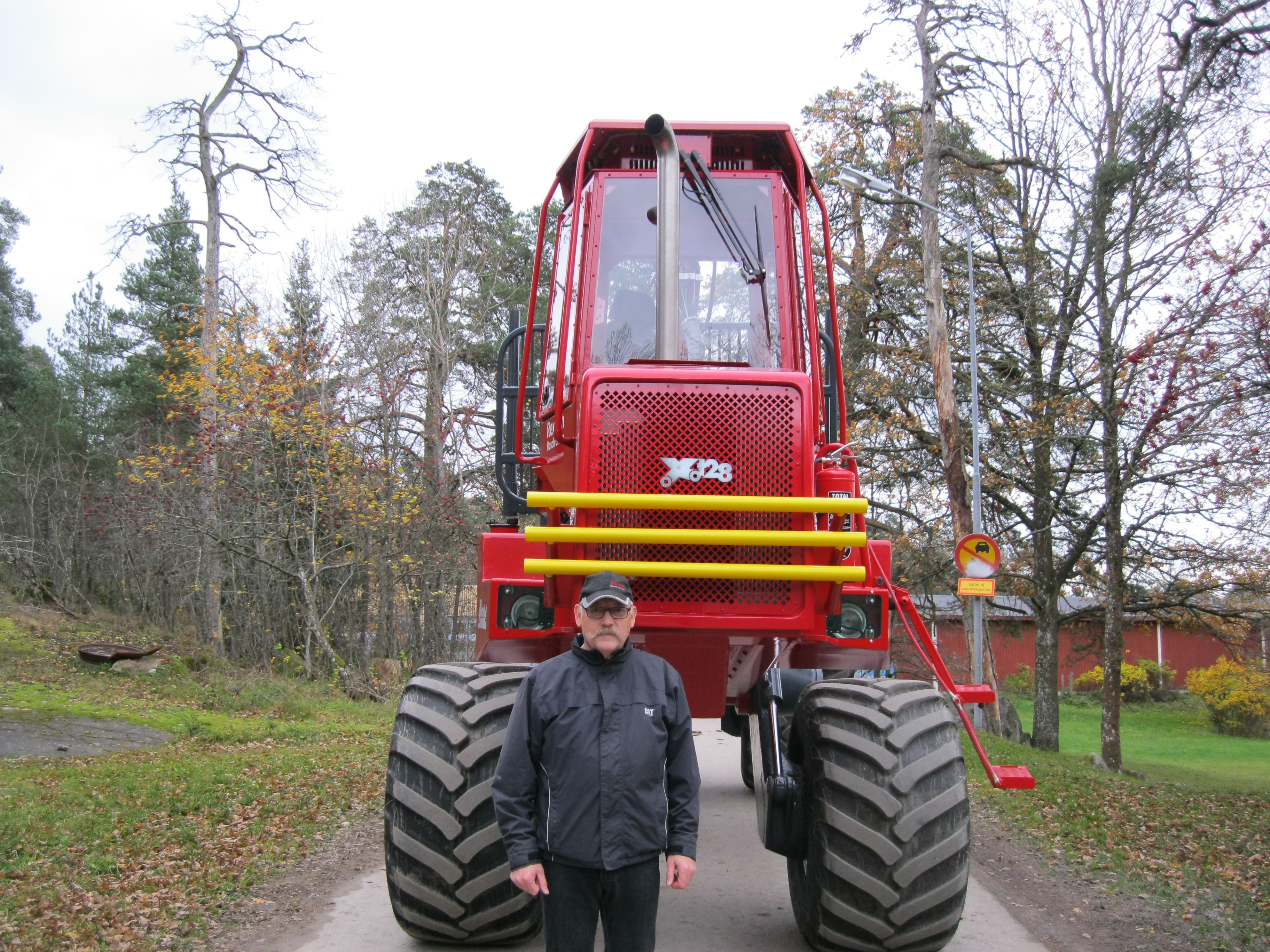 Inte bygger man en skogsmaskin bara sådär, men om man lyssnar noga sedan följer sin egen övertygelse går det, fast det tar tid. Bilden är tagen på Jälla gård utanför Uppsala 2014 med maskinbyggaren i förgrund. Myter om pendelarmsmaskiner: Omöjligt eller bara svårt. Onödigt eller nödvändigt. Högre, lika eller lägre kostnad. Komplicerat eller enkelt. Prestanda jamfört med konventionella? Xt28:an färdigbyggdes 28 år efter Lars Lameksson började plocka ihop Spindeln med pendelarmar. 2:a försöket på 8:de pendelarmskotaren någonsin med 6 pendelarmar. En motor som kan yta  280 Hk och transmission som ger en maximal dragkraft på mera än 280 kN eller 28 ton. Smalare än 28 dm med 750 hjul. En extrem traktor som naturligtvis fick namnet Xt28 bekräftar och avfärdar myter.
